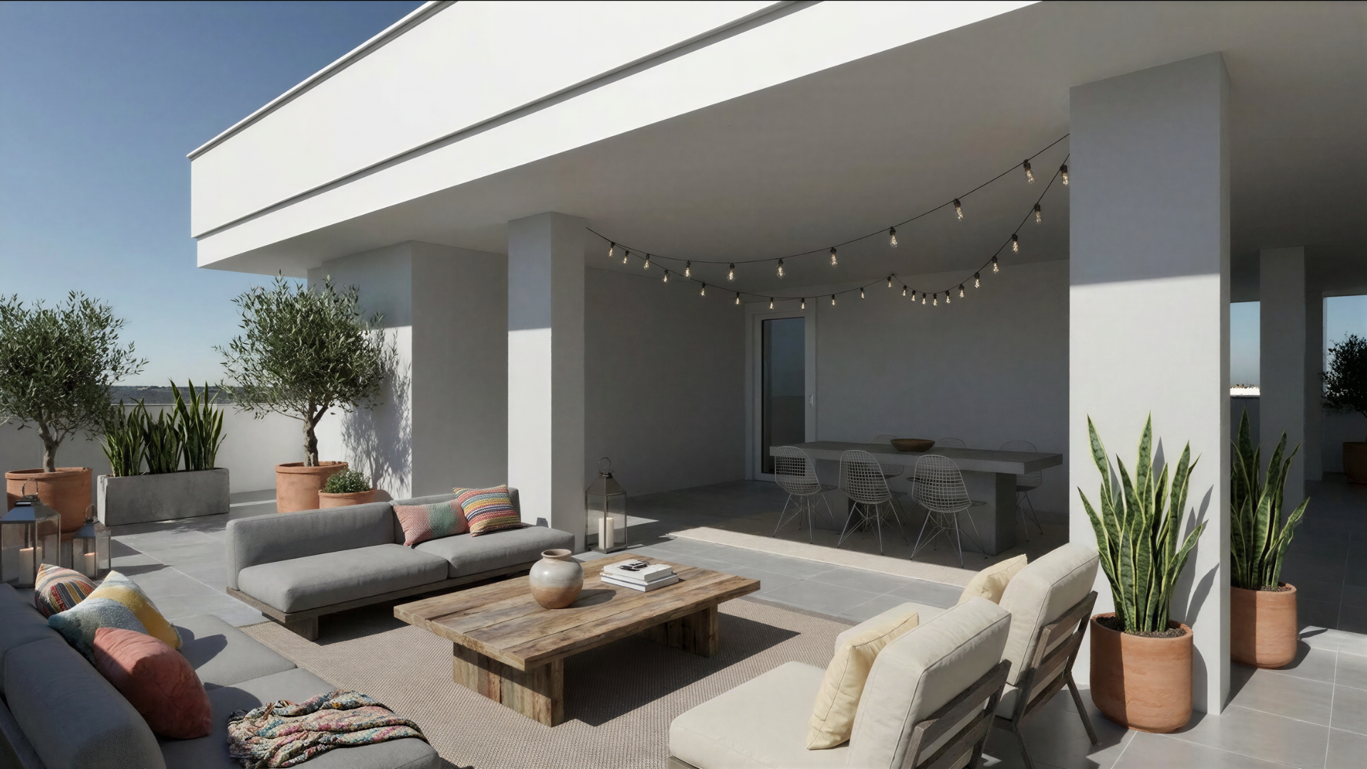 Ogni soluzione offre un luminoso e spazioso salone di oltre 30 mq con angolo cottura e accesso diretto a un terrazzo vivibile, disimpegno, camera matrimoniale, cameretta e bagno.